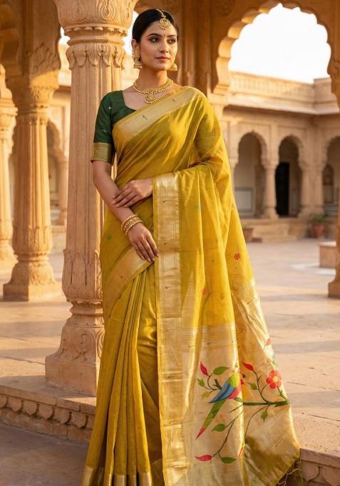 Yellow Weaving Work Cotton Saree Set